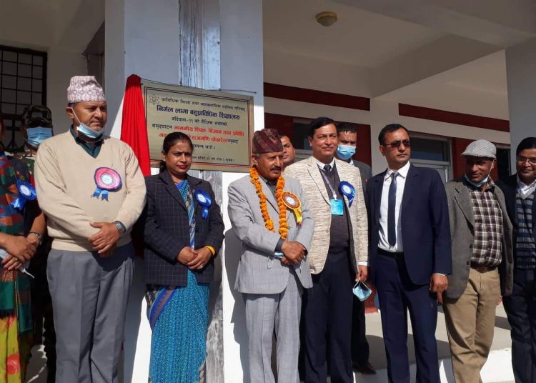 शिक्षा, बिज्ञान तथा प्रविधी मन्त्री गिरिराजमणि पोखरेलले निर्मल लामा बहुप्राबिधिक शिक्षालयको नमुना भवन उद्घाटन गरेका छन् ।