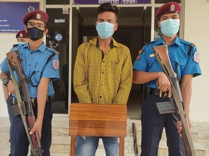 पक्राउ पर्नेमा सुस्ता गाँउपालिका वडा नम्बर ५ तरेनी बस्ने बर्ष २२ को सुनिल भेडियार पाल रहेका छन । प्रहरी चौकी रामनगरबाट खटिएको प्रहरी टोलीले सोमबार बिहान साढे चार बजेको समयमा भारतबाट नेपाल तर्फ आउदै गरेको भारतिय नम्बर प्लेट यु पी ५७ एजेड ५०१९ नम्बरको मोटरसाईकललाई रोकी चेकजाँच गर्ने क्रममा मोटरसाईकल चालक सुस्ता गाँउपालिका वडा नम्बर ५ तरेनी बस्ने भेडियार पालको साथबाट एक राउण्ड चेम्बर लोड भएको टाइप ५४ जस्तो देखिने म्याग्जिन सहितको पेस्तोल सुस्ता गाँउपालिका वडा नम्बर ५ रामनगर ४ नम्बर ठोक्करबाट फेला पारेको हो । बरामद भएको पेस्तोल, गोली र भेडियार पाललाई नियन्त्रणमा लिई थप अनुसन्धान कार्य भैरहेको जिल्ला प्रहरी कार्यालय पश्चिम नवलपरासीका प्रहरी नायब उपरीक्षक राजु लामाले जानकारी दिनु भएको छ ।