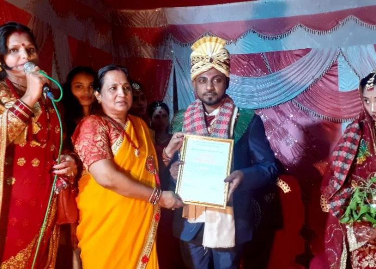 सो दहेज मुक्त विवाहको कार्यक्रममा संचारकर्मी नबिन यादव, महिला समाजसेवी रमिला देवी साह, दहेज मुक्त मिथला नेपालकी अध्यक्ष करूणा झाले नव साह दम्पतिलाई दहेज मुक्त मिथला संस्थाको तर्फबाट कदर पत्र संगै दोसल्ला ओढाएर आशिर्वाद दिदै सम्मान समेत गरेकी हुन।