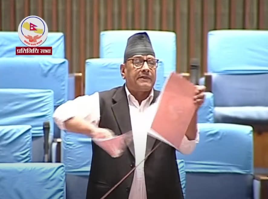 बिहीबार प्रतिनिधिसभाको बैठकमा सरकारले ल्याएको बजेटमा एकाधिकार कायम गरिएको र जनताप्रति उत्तरदायी नभएको भन्दै उनले बजेट पुस्तिका सदनमै च्यातेका हुन् । उनले भने, ‘भौतिक मन्त्रालयको बजेटले धेरै जिल्ला सम्बोधन गर्न सकेन । अहिलेको बजेट नेतामुखि भएको हुनाले बजेटको किताब हेरेँ, जनताबाट उठेको राजस्वले जनताप्रति उत्तरदायित्व लिएको छैन । एकाधिकार कायम गरेकाले अनुमति लिएर सदनभित्र यो किताब च्यातेको छु ।’